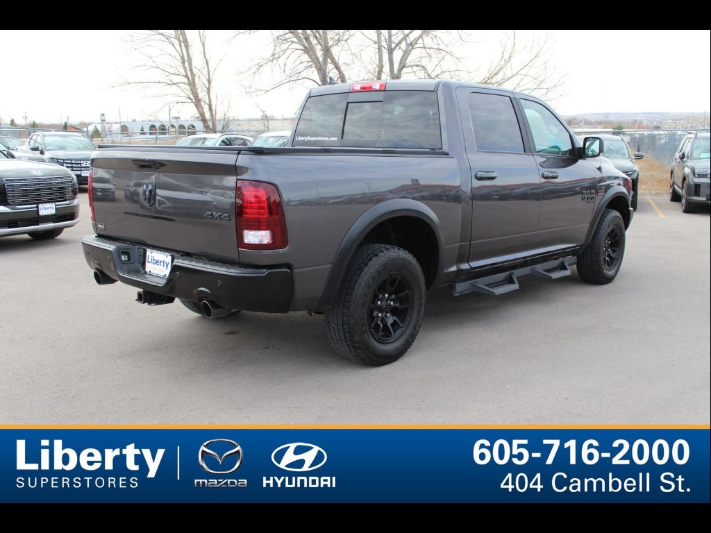 Experience rugged capability and modern comfort with this 2022 Ram 1500 Classic Warlock Crew Cab 4x4 in striking gray. Powered by the legendary HEMI 5.7L V8 engine paired with an 8-speed shiftable automatic, this truck is ready for work or play. Enjoy the confidence of All Terrain and SLT Quick Order Warlock packages, plus the convenience of remote start, power locking tailgate, and rear parking sensors. Stay connected with Uconnect infotainment, Bluetooth, voice-operated controls, and SiriusXM Satellite Radio. Heated seats and steering wheel, rear power sliding window, and 9 Alpine speakers with subwoofer elevate every drive. Safety features include rearview camera, multiple airbags, stability and traction control, and trailer stability control. The aggressive Sport Performance Hood, blacked-out trim, and 20-inch wheels give it unmistakable Warlock style. With a spacious Crew Cab and ample storage, this Ram 1500 Classic is built to handle your toughest jobs and weekend adventures. Schedule your test drive today!